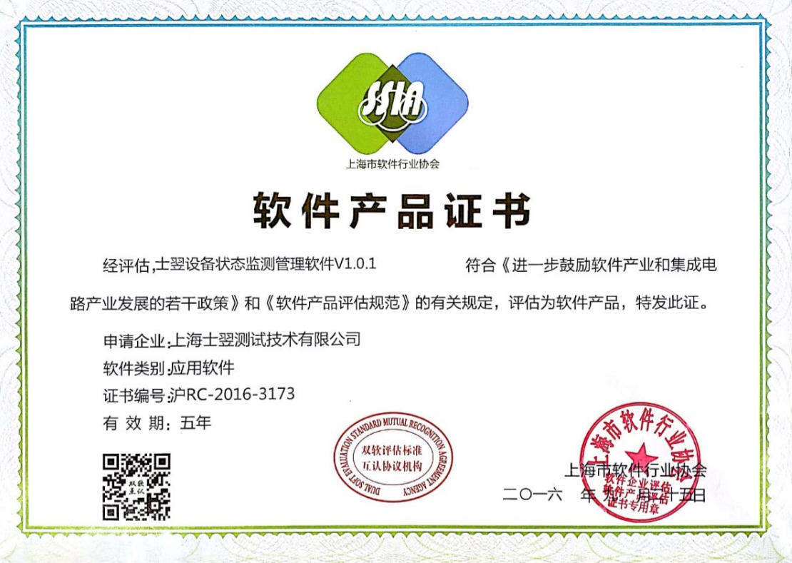 祝賀上海士翌測試技術(shù)有限公司榮獲軟件產(chǎn)品證書